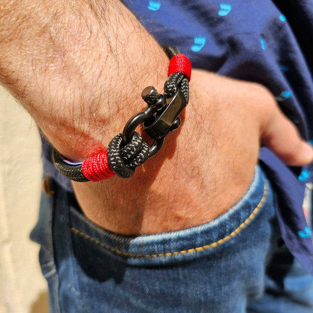 CAPTAIN Schwarzes Schäkelarmband – Rot