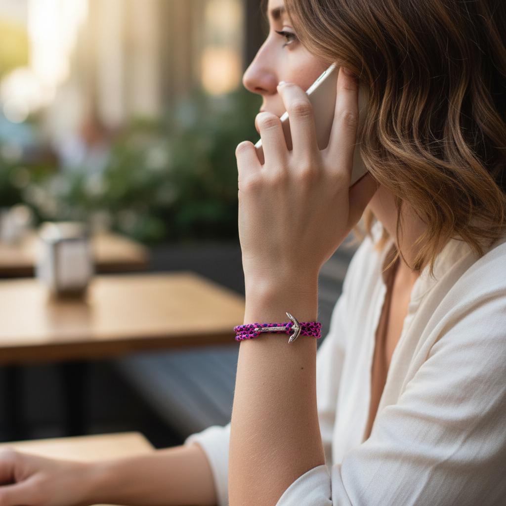 YACHT CLUB mittleres Ankerarmband neonpink