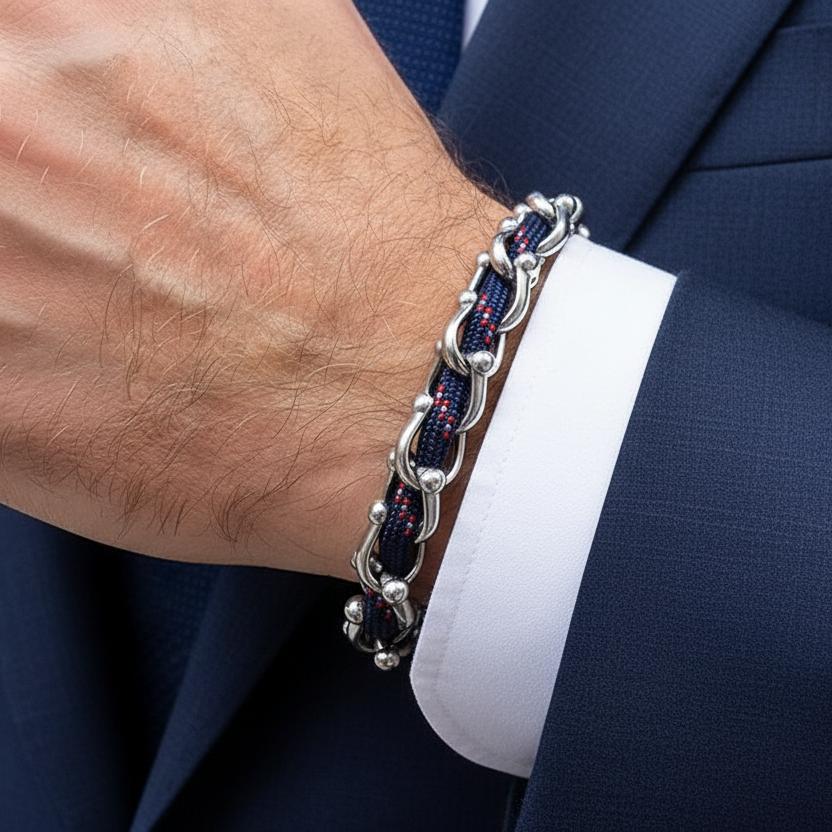 U skladu s najnovijim trendovima nakita, OCEAN MAXI prikazuje razigrani štih sa živopisnim paracordom koji je utkan kroz cijeli dizajn, stvarajući očaravajući kontrast koji nadopunjuje uglađenost titanijskog čelika.