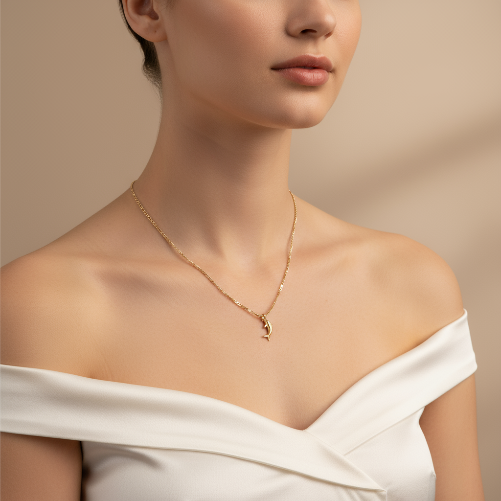 Odaberite boju ogrlice i privjeska (srebrna, pozlaćena 18-karatnim zlatom, pozlaćena 18-karatnim ružičastim zlatom ili crna). Ogrlica je duga 50 cm.