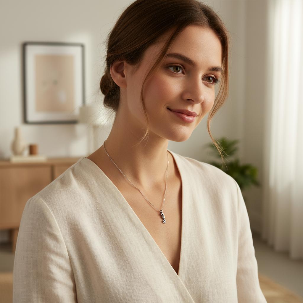 Odaberite boju ogrlice i privjeska (srebrna, 18k pozlaćena, 18k ružičasta pozlaćena ili crna). Ogrlica je duga 50 cm.