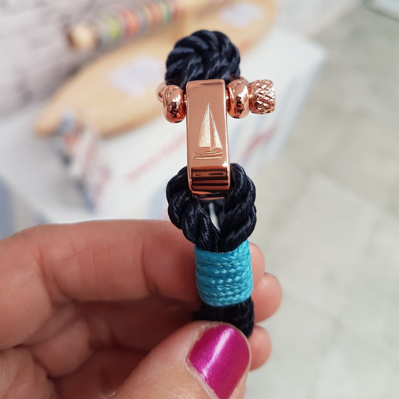 WAVES 4mm narukvica s nautičkom kopčom, tamnoplava, tirkizna